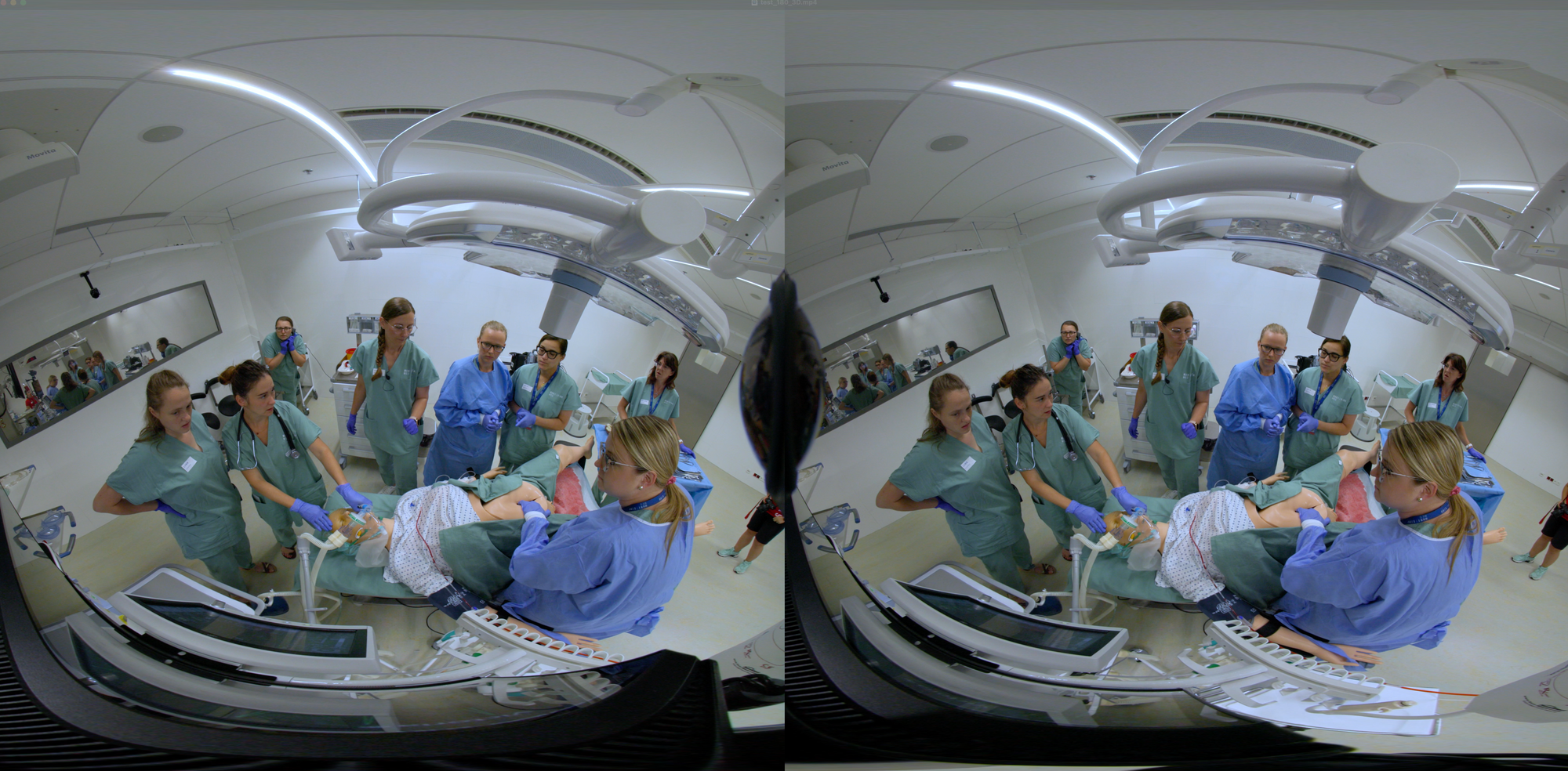 We took the lens to our simulated operating theatre during a dry run of one of our courses. After searching for the perfect spot, we eventually mounted the camera above the vital signs monitor attached to the anaesthetic machine. The result was fantastic! When you put on the VR headset, you are instantly transported into the heart of the action. People are rushing around you, you see the interaction of the entire team, the patient is right below you, and the participants' hands are literally right in front of your eyes. Incidentally, this camera position proved so effective that we’ve started using it for our fixed SIMStation cameras as well.